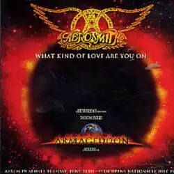 "What Kind of Love Are You On" is a song by American hard rock band Aerosmith. The song, originally a track left off the Nine Lives album, was included on Armageddon: The Album for the 1998 film Armageddon starring lead singer Steven Tyler's daughter Liv Tyler. The song, was released as a promotional single to rock radio, reaching #4 on the Mainstream Rock Tracks chart. Tyler co-wrote the song with guitarist Joe Perry and outside songwriters Jack Blades and Tommy Shaw (both formerly of Damn Yankees). It is the second song written for the film, the other being "I Don't Want to Miss a Thing".