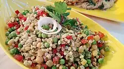Wheat salad (Arabic: سلطة قمح), is an Arab salad which typically consists of wheat, corn, tomatoes, carrots, pickled cucumber lemon, parsley, olive oil and salt.[1]