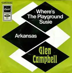"Where's the Playground Susie" is a song written by Jimmy Webb and recorded by American country music singer Glen Campbell. It was released in April 1969 as the second single from the album Galveston. The song peaked at number 26 on the Hot 100, number 28 on the U.S. Billboard Hot Country Singles chart, and number 8 on the Canadian RPM Top Singles chart.[1]