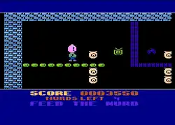 The player controls one of the four Nurds and must complete 50 rooms filled with obstacles, collecting food along the way. Each level has different obstacles (such as snakes, bugs, or bouncing balls) that must be avoided, or the player will lose one of three lives. The player-controlled Nurd can fly using the propellers on its head, but if the Nurd touches a wall or platform, it floats back to the ground and cannot fly until it touches solid land. In each room, the player must collect four pieces of food before he can proceed to the next level.