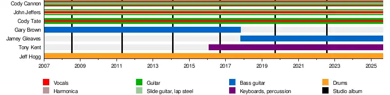 - Cody Cannon – lead vocals, guitar, harmonica (2007–present)