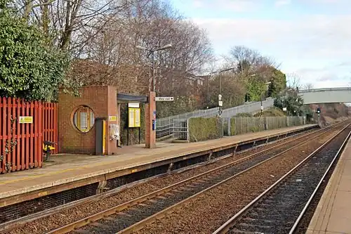 Whiston railway station serves the village of Whiston in Merseyside, England. The station, and all trains serving it, are operated by Northern Trains. It lies on the electrified northern route of the Liverpool to Manchester Line, the original Liverpool and Manchester Railway 7+1⁄2 miles (12 km) east of Liverpool Lime Street. It was opened on 10 September 1990 by British Rail, at a cost of £420,000.
