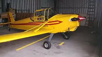 The Model 165 is a strut-braced, low-wing monoplane made with welded steel-tube fuselage along with a fabric covering.[1] The wing is a conventional light alloy structure with a fabric covering with vee-bracing strut on each side, ailerons but no flaps.[1] The aircraft is powered by a 65 hp (48 kW) Continental A-65 air-cooled engine driving a two-bladed fixed-pitch tractor propeller.[1] The pilot has an enclosed cockpit with a rearward-sliding transparent canopy, the landing gear is a fixed tailwheel type.[1]