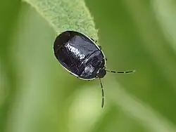 Sehirus cinctus, also known as the white-margined burrower bug, is within the genus of burrowing bugs belonging to the family Cydnidae, subfamily Sehirinae. Belonging to the suborder Heteroptera, they are true bugs. They feed on plants in the Urticaceae (nettle) and Lamiaceae (mint) families. These bugs are somewhat unusual in that they exhibit brooding behavior. The female deposits eggs, about 120–150, in shallow burrows and watches over them. After the young hatch, the mother will bring food to them in the burrow for 1–3 days, after which the young will leave and forage on their own.[1] Females can have up to two broods,[1] and parental care is initiated from chemical cues in the eggs.[2]