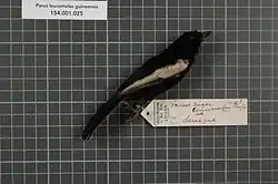 - ^ Johansson, U.S.; Ekman, J.; Bowie, R.C.K.; Halvarsson, P.; Ohlson, J.I.; Price, T.D.; Ericson, P.G.P. (2013). "A complete multilocus species phylogeny of the tits and chickadees (Aves: Paridae)". Molecular Phylogenetics and Evolution. 69 (3): 852–860. doi:10.1016/j.ympev.2013.06.019. PMID 23831453.