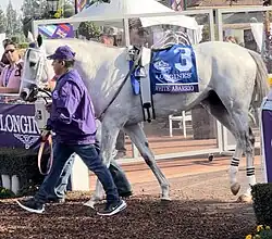 ![]() White Abarrio being led into the paddock before the 2023 Breeders Cup Classic | |