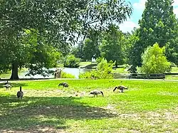 The White City dairy had a stock pond that supplied water for the livestock. In 1926, this became the focus of White City Park. The size of the pond was reduced to about half its former size, a fountain was added and the 10 acres (4.0 ha) area of the park was landscaped. The park was renamed Braden Park and continues to operate as a Tulsa city park.[9] The park has tennis courts, picnic tables and two playgrounds.[10]