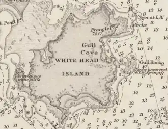 The island was granted to Captain William Frankland who was for years its sole resident,[18][19] Frankland invited J. J. Audubon to visit the island May 22 1833 to study the Herring Gulls, whose eggs were harvested on the island.[18] Frankland's journal later went to auction and was purchased by the New Brunswick Museum who created a copy to display at White Head.[20]