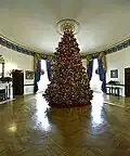 The White House Christmas tree is selected from various growers nationwide.[22] Growers in the state of North Carolina have provided 16 trees, more than any other state.[23] The state of Pennsylvania has the second-highest total of trees provided for the White House with 11, as of 2024.[24] The White House Christmas tree has been displayed in the Blue Room many times since 1961. It has also occasionally been displayed in the Entrance Hall.[8][25]