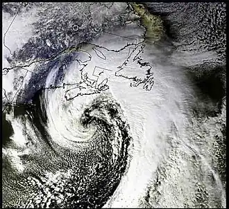 The storm formed approximately 200 kilometres (120 mi) southeast of Cape Hatteras, North Carolina, on February 17, 2004. It intensified over the Gulf Stream, moving at 35–40 km/h (22–25 mph) before striking Atlantic Canada.[1]