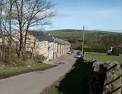 The houses of 'East Row' were built back to back and were of smaller construction to that of West Row, many were occupied by larger families and were eventually knocked into one through the back wall to form a larger four room house. All of the housing unusually (for the time) had allotments or gardens - with some of the tenants having built outbuildings to aid in their day to day living requirements. The gable end house East Row had a stone 'lean-to' which can clearly be seen on the land plans of 1861 as well as on the photograph above.