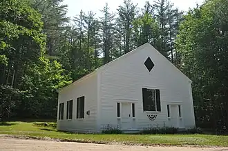 The White Meetinghouse, also known as the First Freewill Baptist Society Meetinghouse, is a historic meeting house on Towle Hill Road, south of Eaton Center, New Hampshire. Built in 1844, it is a well-preserved and little-altered example of a vernacular Greek Revival meeting house. The building was listed on the National Register of Historic Places in 1980.[1] The building is now maintained by a local community organization, and is used for community events and occasional services.