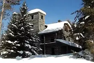 White Otter Castle is an elaborate 3-storey log house built on the shore of White Otter Lake, about 35 kilometres (22 mi) south of Ignace, Ontario, Canada, by hermit, trapper, and fisher James Alexander "Jimmy" McOuat.[2] It is an example of typical log house construction at the turn of the 19th and 20th century, but remarkable "because of the uniqueness or ingenuity of the methods by which [it] came into existence."[3]