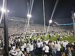 Perhaps the most influential White Out was Penn State's 24–21 upset win over No. 2 Ohio State in 2016, which is regarded by many as the best game in Penn State football history.[4] The pivotal play, Grant Haley's blocked field goal return in the 4th quarter, was voted as the best Penn State play of the century.[5] The game's aftermath included fans storming the field at Beaver Stadium and celebratory riots in downtown State College. Their White Out rematch two years later, a 27–26 loss, would break the Beaver Stadium attendance record, edging out the previous record (the 2017 White Out against Michigan, a 42–13 victory) by less than 70 attendees.