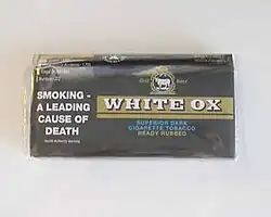 Prior to the prison smoking ban in August 2015, White Ox tobacco was the standard issue tobacco in the state of N.S.W. Australia prisons,[3] where it was colloquially known as "Boob Shit" or "Boob Weed."[4]