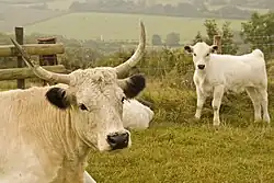 The White Park is a modern British breed of cattle. It was established in 1973 to include several herds or populations of colour-pointed white cattle – white-coated, with points of either red or black on the ears and feet.[5] Such cattle have a long history in the British Isles, and the origins of some herds go back to the Middle Ages.[6][7][8][9][10]