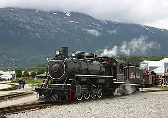 White Pass & Yukon Route 73 is an operating narrow-gauge 2-8-2 "Mikado" type steam locomotive. It was built by the Baldwin Locomotive Works for the White Pass and Yukon Route in May 1947.[3][4] After retirement on June 30, 1964, the locomotive was moved to Bennett, British Columbia, in 1968 for static display. In 1979, the locomotive was moved again to Whitehorse, Yukon, this time to be restored to operating condition. Restoration was completed in 1982 and the locomotive has been back in service since then. As of 2010 it was the larger of two operating steam locomotives on the line.