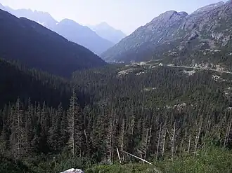 White Pass, also known as the Dead Horse Trail (elevation 873 m or 2,864 ft), is a mountain pass through the Boundary Ranges of the Coast Mountains on the border of the U.S. state of Alaska and the province of British Columbia, Canada. It leads from Skagway, Alaska, to the chain of lakes at the headwaters of the Yukon River (Crater Lake, Lake Lindeman, and Bennett Lake).