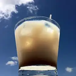 The Oxford English Dictionary[3] refers to the first mention of white Russian in the sense of a cocktail as appearing in California's Oakland Tribune on November 21, 1965.[4] It was placed in the newspaper as an insert: "White Russian. 1 oz. each Southern, vodka, cream",[5] with "Southern" referring to Coffee Southern, a short-lived brand of coffee liqueur by Southern Comfort.[6]