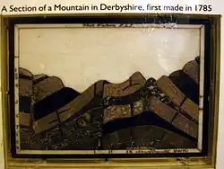 Possibly inspired by geologist John Whitehurst's 1782 diagrams of stratigraphic sections in the Matlock area of Derbyshire, in 1785 Watson presented Whitehurst with a diagrammatic 'Tablet', 'A Section of a Mountain in Derbyshire', made from samples of the rocks themselves. This innovative method of display not only showed an early understanding of the new science of geological strata but also formed the first attempt at documenting the stratigraphical structure of Derbyshire as a whole as opposed to the structure of specific localities as Whitehurst had. Over the course of his life, Watson would produce about 100 such tablets, accompanied with explanatory leaflets, and his papers contain sketches for considerably more. Unfortunately most of these tablets are now untraceable, although around fifteen are known to still survive.