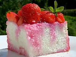 - Angel food cake, a sponge cake made using only egg whites[2]