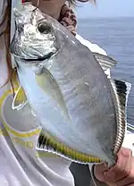 - ^ a b c Yoneda, M.; K. Futagawa; M. Tokimura; H. Horikawa; S. Matsuura; M. Matsuyama (2002). "Reproductive cycle, spawning frequency and batch fecundity of the female whitefin jack Kaiwarinus equula in the East China Sea". Fisheries Research. 57 (3): 297–309. Bibcode:2002FishR..57..297Y. doi:10.1016/S0165-7836(01)00349-6.