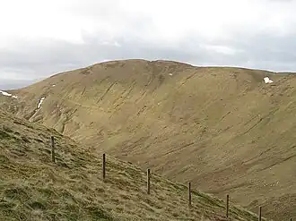 Whitehope Heights is a hill in the Moffat Hills range, part of the Southern Uplands of Scotland. The lowest Donald hill in the range, it is separated from Hart Fell by a steep grassy cleuch known as The Gyle. Like its neighbour, the Dumfries and Galloway-Scottish Borders border runs along its summit.[3] The southern slopes of the hill are part of the Corehead hill farm, an area owned by the Borders Forest Trust for the purposes of habitat regeneration; as a result, a large deer fence lines the boundary.[4] East of the Devil's Beef Tub and Annandale Way, it is most frequently climbed from this direction, but ascents from Hart Fell are also common.[5]