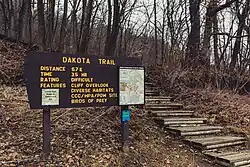 The park's 1930s facilities are listed on the National Register of Historic Places as the Whitewater State Park CCC/WPA/Rustic Style Historic Resources. The 536-acre (217 ha) historic district includes 29 contributing properties.[2] The district was listed for having state-level significance in the themes of architecture, entertainment/recreation, landscape architecture, and politics/government.[3] It was nominated for its examples of New Deal federal work relief, diverse National Park Service rustic design, and landscape architecture on a challenging site.[4]