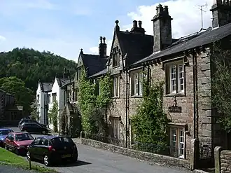 Whitewell Hotel is an historic building in the English parish of Bowland Forest Low, Lancashire. It is Grade II listed, built in 1836, and is in sandstone with a slate roof in two storeys with attics. It consists of a cross wing at the left, and a long main range that has two gables with dormers. The windows are mullioned with chamfered surrounds. On the front is a gabled porch that has a doorway with a chamfered surround. There are ball finials on all the gables.[1]