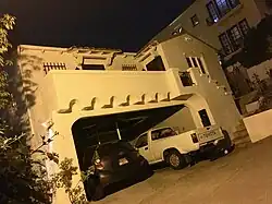 Whitley had sold some of his land for one dollar to the water company for the reservoir about 1904 and bought it back 16 years later at a cost of $30,000.[11] In 1918, Whitley commissioned architect A.S. Barnes to design Whitley Heights as a Mediterranean village on the steep hillsides above Hollywood Boulevard. Whitley sent Barnes to tour the Mediterranean area to study its architecture and landscaping of Italy's historic hill towns before returning to the Southland, where he designed most of the Whitley Heights houses between 1918 and 1928. The development grew during the 1920s, and it became the first Hollywood celebrity community.[4][12][13] The streets in the development were dedicated to public use in 1920 and 1921, and they were improved by the city between 1924 and 1927. Most of them had no sidewalks, with stairways built from level to level to encourage walking.[10]