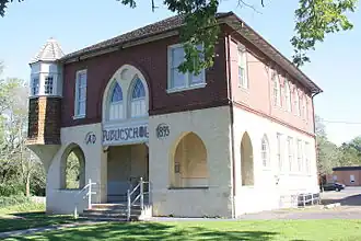 Whitpain Public School, also known as Whitpain High School and the 1895 School, is a historic school building located in Blue Bell, Montgomery County, Pennsylvania. It was built in 1895, and is a two-story, stucco covered stone and brick building. It is in a Late Victorian style with Queen Anne and Gothic Revival style details. It measures 37 feet wide by 50 feet deep, and sits on a fieldstone foundation. It features an entrance porch and numerous Gothic arches.[2]