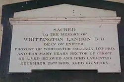 Whittington Landon (c. 1758 – 29 December 1838) was an academic at the University of Oxford and an Anglican clergyman who became Dean of Exeter.
