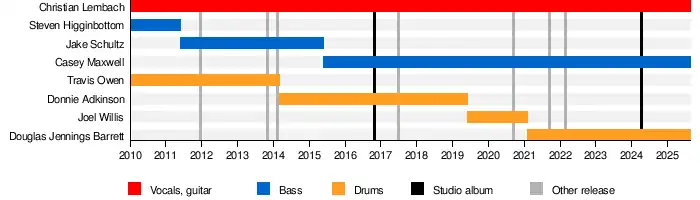 - Jake Schultz – bass (2011–2015) (former bassist for Norma Jean)