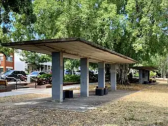 The Wickham Park air raid shelters, now used as shade structures, demonstrate the secondary uses that were part of the original design intention. The shelters are durable examples of innovative design and use of concrete technology during World War II.[1]