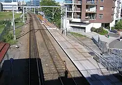The station's structure remained largely the same for the rest of the 20th century. In 1992, a footbridge connecting the two platforms across the tracks, also located at the station's eastern end, was built, allowing access between the platforms.[8] In 2007, a number of changes were made as part of the New South Wales Government's Newcastle Rail Corridor Project, a refurbishment campaign across the railway line designed to extend the life of the Newcastle railway line,[9] described by contemporary media as a "backflip" for the Iemma Government, whom originally planned to close the line altogether.[10] The changes included an extension of the station's southern platform to fit eight-car trains bound for Newcastle, new entrances to the station via the level crossing at Stewart Avenue, and an upgrade of the CCTV system at the crossing assisting the signal box.[9]