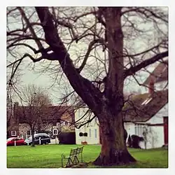 The village green is bordered by a tall white clapboard mill with working water wheel, the parish church, several houses and a public house, The Rose Inn. There was once another public house, 'The Hooden Horse', in The Street adjoining the village green, known until the 1950s as 'The Swan', this closed in 1979.