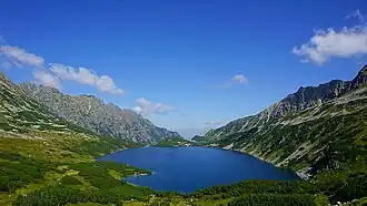 Wielki Staw Polski (Polish: Wielki Staw Polski; Slovakian: Veľký stav; German: Großer Polnischer See; Hungarian: Nagy-tó)[1] - is a tarn located in the High Tatras, at an elevation of 1,665 metres in the Valley of the Five Polish Lakes (Dolina Pięciu Stawów Polskich), by the slope of the Miedziane. It's the second-largest lake by area (34.14 hectares (84.4 acres)) in the Tatra Mountains, just after Morskie Oko (34.54 hectares (85.4 acres)). The lake is located in Poland in the Lesser Poland Voivodeship.[2]