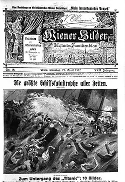 The sinking of RMS Titanic as illustrated on the 21 April 1912 issue of Wiener Bilder