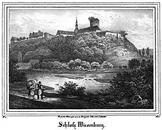 The Wiesenburg Castle (German: Burg Wiesenburg or Schloss Wiesenburg) is a castle located in the Wiesenburg district of Wildenfels, Germany, on a hill overlooking the eastern shore of the Mulde river. The castle protects the bridge across the Mulde to Schönau and Wildenfels.