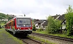 From the mid-1950s until the temporary discontinuation of passenger services, mainly Uerdingen rail buses of the VT 95 and VT 98 series took over the passenger services.[41] From the 1970s, special trains were pulled by class 218 diesel locomotives.