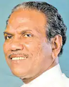 In 1960 he entered Parliament from the Katana electorate as a United National Party candidate, and was re-elected in 1965[4] when he was promoted to Parliamentary Secretary to the Minister of Public Works, Post and Telecommunications.[5] Except for a brief period after the defeat at the 1970 general election[6] he represented the seat until 1989. After the landslide victory by the United National Party in the 1977 general election, he was appointed Minister of Textile Industries in 1977 and in 1989 he was Minister of Transport and Highways.[5] In 1993 after the assassination of President Premadasa and Ranil Wickremesinghe became Prime Minister, he was appointed Leader of the House.[7]