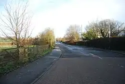A drift existed on the route, which connected St John's Grange Farm to Madingley Road, and a handful of agricultural cottages (dating from 1905) and bungalows (1926) pre-date the road construction. The local historian Philomena Guillebaud notes that the bungalows are the only working-class housing to be built on land belonging to St John's College in west Cambridge, other than those housing the college's own agricultural workers.[2] St John's College sold 10 acres (4.0 ha) of land now lying on the west of the road to Emmanuel College in 1907 for sports grounds, and a sports pavilion and adjoining groundsman's house and stable were constructed in 1910 for Emmanuel.[3]
