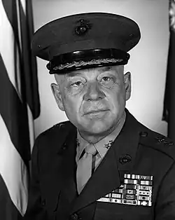 Wilbur Frank Simlik (June 19, 1921 – February 12, 2014) was a highly decorated major general in the United States Marine Corps. A veteran of World War II, he distinguished himself as platoon leader of the 3rd Battalion, 25th Marines, during the Iwo Jima campaign and received the Silver Star for bravery. Simlik remained in the Marine Corps Reserve following the war, but was recalled to active duty during the Korean War and distinguished himself again as rifle company commander.[1]