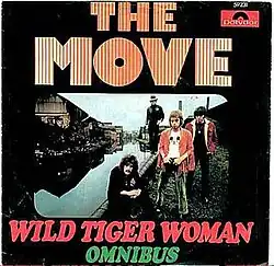 "Wild Tiger Woman" is a song recorded by the Move, produced by Denny Cordell and, as with all the other A-sides of their singles, written by Roy Wood. It was recorded on the 21st of March, 1968 at Olympic Studios in London, and was issued as their fifth single on the 30th of August. Despite their previous chart success, the song only charted at number 53 on the UK Singles Chart, despite all of their previous singles having reached the top-5 on that chart.[1][2] Although the song did not appear on the band's second studio album, Shazam, it did appear as the fourth bonus track on the 2007 reissue of the album, alongside its B-side, "Omnibus".