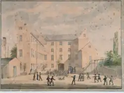 No. 60 is the former Wildersgade Barracks. The main building was built by Jørgen Henrich Rawert and Andreas Hallander in 1802.[1] The long, one-storey building to the left is the barracks' former stables. The yellow building on the other side of the street is the rear side of the Irgens House complex which served as artillery barracks from 1789. Many other houses in the street are also listed. They consist mostly of townhouses and former warehouses. The large building at No. 70, on the corner of Cjristianshavn Canal and Wilder's Canal, is Princess Marie's Home for Old Seamen and Their Widows and also houses the Seamen's Association of 1856. The oldest part of the building is from 1874 while an extension dates from 1921.