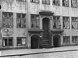 The number of residents had dropped to 50 at the 1880 census.[28] Claus Frederik Schumann, a master carpenter, resided on the ground floor with his wife Anna Margrethe Schumannm, their 29-year-old daughter Anna Claudine Schumann (teacher) and their 25-year-old son Benjamin Schumann (litographer).[29] Christen Peter Jensen, a workman, resided on the ground floor with his wife Scharlotte Jensen.[30] Antoni Lorentzi Schmidt, a shoemaker, resided on the first floor with his wife Karen Magrethe Schmidt and their nine-year-old daughter Maria Anna Schmidt. His shop was located in the basement.[31] Joakim Eibeschütz, a master building painter, resided on the first floor with his wife Dorthea Eibeschütz.[32] Niels Peter Nielsen, a cooper, was also resident on the first floor.[33] David Emanuell Rasmussen, a turner, resided on the second floor with his wife Ane Christine Rasmussen and their two children (aged 17 and 19).[34] Scharlotte Ømann, a 53-year-old widow needleworker, resided on the second floor with her 30-year-old son (shoemaker).[35] Johan Henrik Petersen, a machinist, resided on the third floor with his wife Anna Viktoria Petersen and their three children (aged one to four).[36] Clara Nielsen and Karoline Paasche, rwo widows employed with needlework, were also resident of the third floor.[37][38] Caroline Marie Sørensen, a widow employed at a tobacco factory, resided on the ground floor of the rear wing.[39] Emilie Sofie Holm, a widow, resided on the ground floor of the rear wing with her son Theodor Holm.[40] Karoline Bentzen, a 65-year-old widow, resided on the ground floor of the rear wing with her 44-year-old daughter Karoline Emilie Busch (needleworker).[41] Anna Marie Larsen, a bookprinter, resided on the first floor of the rear wing with three lodgers.[42] Hansine Mortensen, a just 28-year-old widow laundry woman and needleworker, resided on the second floor of the rear wing with her two children (aged one and three) and one lodger.[43] Edvard Dinesen, a smith, resided on the third floor of the rear wing with his wife Henriette Dinesen and their three children (aged one to 15).[44] Juliane Schrøder, a 60-year-old widow, resided on the third floor of the rear wing with her daughter Olga Vilhelmine Salling and one-year-old granddaughter.[45]