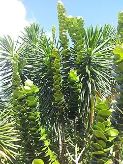 Mauritius is the home of a large number of endemic species of Pandanus (screwpine or vacoas), namely: Pandanus carmichaelii, Pandanus barkleyi, Pandanus conglomeratus, Pandanus drupaceus, Pandanus eydouxia, Pandanus glaucocephalus, Pandanus iceryi, Pandanus incertus, Pandanus macrostigma, Pandanus microcarpus, Pandanus obsoletus, Pandanus palustris, Pandanus prostratus, Pandanus pseudomontanus, Pandanus pyramidalis, Pandanus rigidifolius, Pandanus sphaeroides, Pandanus spathulatus, Pandanus vandermeeschii and Pandanus wiehei. The common vacoas sac (Pandanus utilis) of Madagascar has also been introduced and propagated in Mauritius, and it has now naturalised.