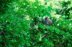 Another indigenous dweller of Mauritian rivers and lakes is the eel. It is not very often seen and prefers to stay in crevices or hide under rocks. Eels spend most of their time in fresh water but go back to the sea, where they come from, to reproduce. Mauritian eels, like those from Madagascar, Réunion, Seychelles and East Africa, have their breeding grounds in the Nazareth Trough, an ocean trench situated between longitudes 60-65 °E and latitudes 10-20 °S. Eels can wriggle across land, and this perhaps explains why eels are found in some isolated ponds of Mauritius. There are three varieties of eels on the island. Two of them are found in Madagascar, Reunion and Africa, while the third one is present in the Seychelles. Most probably, the commonest eel is the marbled eel. Eels can grow quite big, if they cannot find a way to go back to the sea.[15] This perhaps explains why some very big eels have been caught in Mauritius, notably at La Ferme reservoir. In Rodrigues an eel more than 2 metres long was caught in a spring, in the heart of a forest, at Cascade-Pigeon.[16] It is believed that the eel was 100 years old. There is a theory that eels play an important role in ecosystems; they prevent springs from drying up. All three Mauritian species take a silvery colour when they go back to the sea.