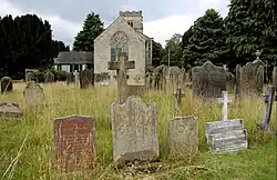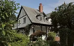 Edgecombe's first wife Jane died of pneumonia on 30 October 1939, at Craven Lodge. She was cremated at Harrogate Crematorium.[12] On 18 October 1945 at St Mary's Church, Hawksworth, Leeds,[27] he remarried to Gabrielle Helen Holgate Butler,[nb 11][4][28] daughter of Hugh Myddleton Butler of Kirkstall, Leeds.[4] From 1945 they were living at 122 Leadhall Lane, Harrogate.[27][29] Gabrielle outlived him.[1][9]