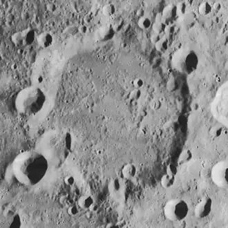 Wilhelm is a lunar impact crater in the southern part of the Moon, to the west of the prominent Tycho. Portions of the ray material from Tycho lie across the rim and floor of Wilhelm. Attached to its southern rim is the crater Montanari, while Lagalla is attached to the southwest. To the north-northeast is Heinsius.